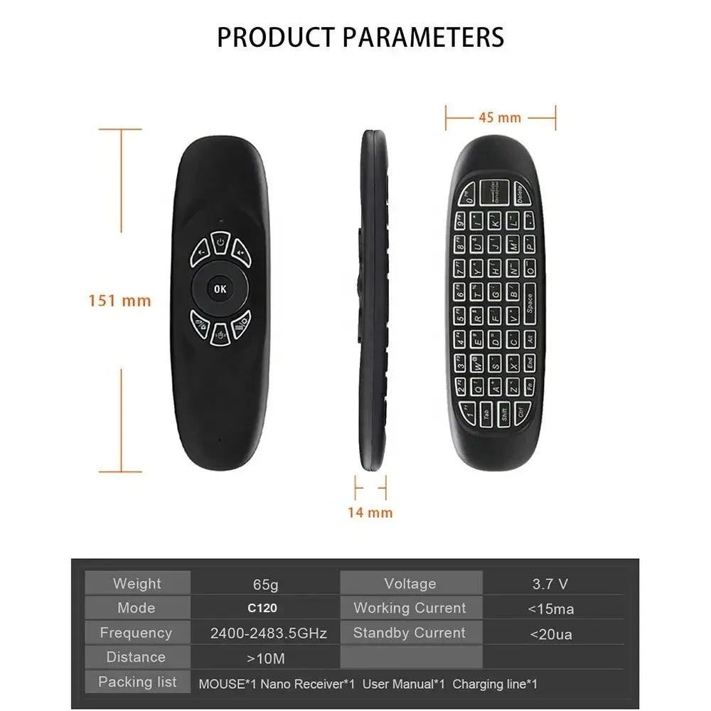 C120 RGB Backlight Fly Air Mouse Gyro Sensor Wireless 2.4G RF Keyboard Remote Control For Android Smart TV Box